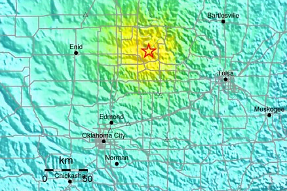 Saturday's quake was centered about 9 miles northwest of Pawnee, Oklahoma, which has a population of about 2,200. Earlier this week, the same spot, which is about 70 miles northeast of Oklahoma City, saw a magnitude 3.2 temblor.