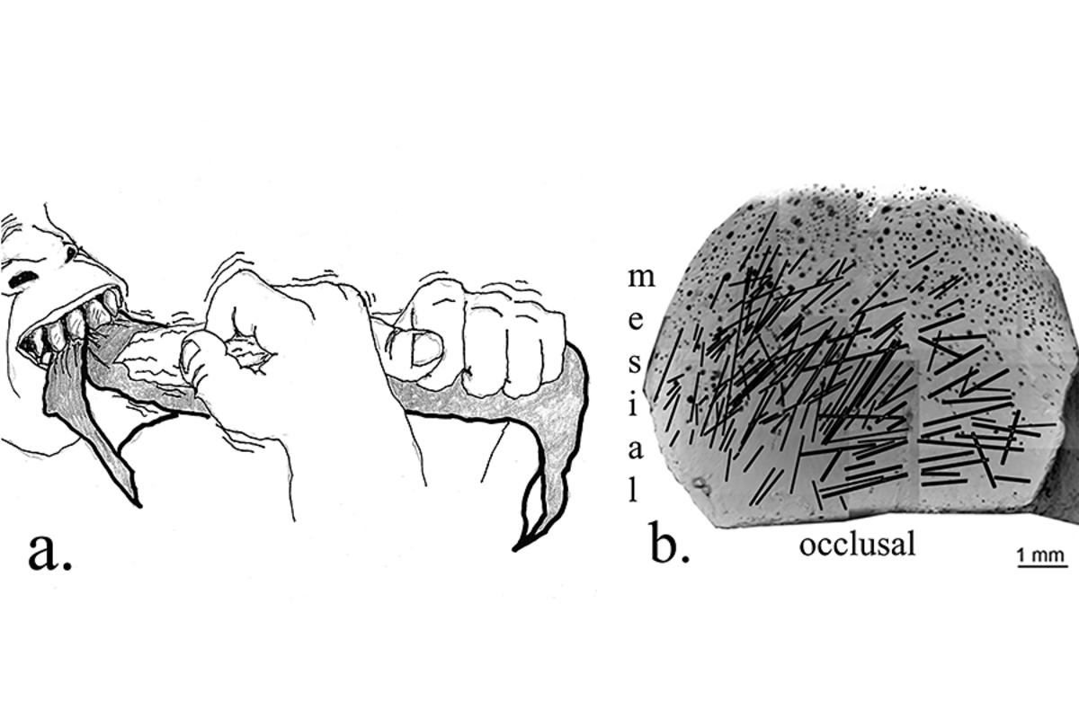 Dr. Frayer, along with an international team of colleagues, decided to take a closer look at what might have created these marks. They found that the scratches were consistent with those left on mouth guards in experiments where subjects used their teeth as a sort of "third hand" while cutting meat or another tough material.