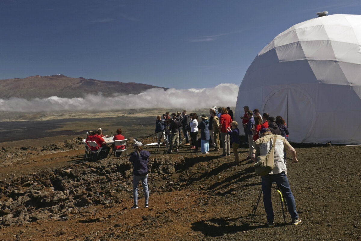 Six NASA-backed research subjects who have been cooped up in a Mars-like habitat on a remote Hawaii volcano since January emerged from isolation Sunday. They devoured fresh-picked tropical fruits and fluffy egg strata after eating mostly freeze-dried food while in isolation and some vegetables they grew during their mission.