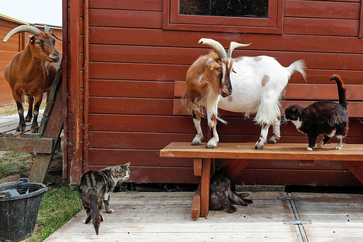 The goats and chickens sunning themselves together in the hay聽at VINE Sanctuary, along with the roughly 500 other residents 鈥 including cattle, sheep, doves, parrots, geese, emus, and a few alpacas 鈥 represent the charmed few, ambassadors for a radically different way of life for domesticated animals. The animals mingle freely at the 106-acre facility, half of which is set aside as a refuge for local wildlife. Goats offer rides to chickens, alpacas lounge by the hay bales, and sheep and cows approach a strange reporter for head scratches.