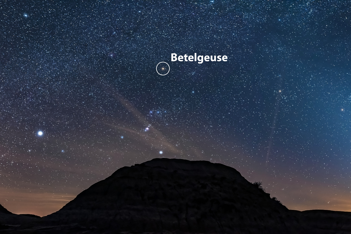 With a distinctive reddish hue and brightness, Betelgeuse is easy to spot with the naked eye. It is, in fact, a red supergiant. That means that although it is a cooler star, it鈥檚 among the largest stars in the universe by volume. If it were in the place of the sun in our solar system, it would fill the space beyond the orbits of Mercury, Venus, Earth, Mars, and maybe even Jupiter.