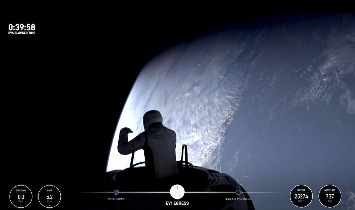 Mr. Isaacman emerged first from the hatch, joining a small elite group of spacewalkers who until now had included only professional astronauts from a dozen countries.