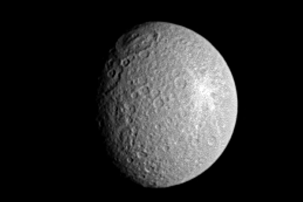 Rhea, taken by the Cassini spacecraft in March, 2010. Credit: /JPL/Space Science Institute