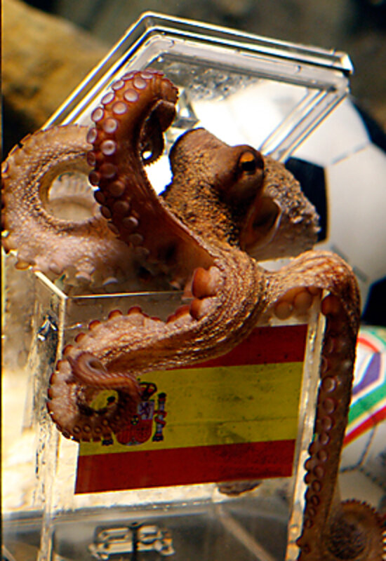 So now it's not just Spain versus the Netherlands, it's Paul the Octopus versus Mani the Parakeet. Or nine brains versus one, if you want to think about it physiologically.