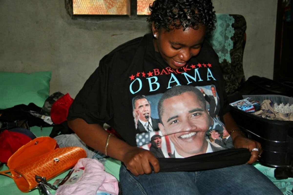 If you had one chance in 10 years to send presents to your child, what would you give them? Dawami and Hassan faced the dilemma this week, as I prepared to visit their daughter Neema and grandson Briton in Tanzania.I said I would use my luggage allowance to take them a bag of gifts from their family here. Hassan and Dawami spent the week nervously shopping, and Bill and Igey contributed favorite toys and clothes for their nephew. On Friday, when I went to their house to pick up the suitcase, Hassan, Igey, and I unpacked it and went through all the items together.The contents ranged from the touching to the bizarre: One large locking suitcaseClothes: Two Obama T-shirts One blue-and-beige, umbrella-print, African-style skirt and top One child's school uniform One child's polo shirt and jean shorts One rhinestone-studded jeans and T-shirt set Underwear, socks Two pairs kid's Sketchers sneakers, one of which lights up like a police car Women's Dr. Scholl's sneakers with gel insolesJewelry: One 3", rhinestone-studded, gold-plated, red-paint-splashed hockey mask necklace charm One snarling, fanged, 4-inch, rhinestone-encrusted skull necklace Two gold key necklaces, the one Dawami usually wears, and the one Hassan does Three rings, including the one Dawami always wears, well-worn and losing its stones Gold bracelet African mask-style necklace and earring setToys: 18-inch stuffed dog in NBA attire (contributed by Igey) One battery-operated Santa head that screeches: "Ho Ho Ho, Merry Christmas!" and sings "Jingle Bells." Box of 64 crayons Package of pencils and erasers Battery-powered plastic helicopter Alphabet puzzle Leapfrog learning gameAccessories: Five boys' baseball caps: USA, Green Bay Packers, camo, red, and one with a flaming brim Seven pairs of sunglasses Two clutch handbags, one made of iridescent orange faux-snake. High heels to match. Four belts, one studded with metal pointsMisc. Two large envelopes full of family photos Set of green, rubber, artificial teethIn the end, Igey and Hassan together had to sit on the bag to close it. Today, it and I leave for two weeks with Neema and refugee friends of Dawami and Hassan. For the latest on the journey, check back here on the blog, or join us on Facebook and Twitter for the most up-to-the-minute updates.Travel in Tanzania for this project is supported by , in Washington DC.