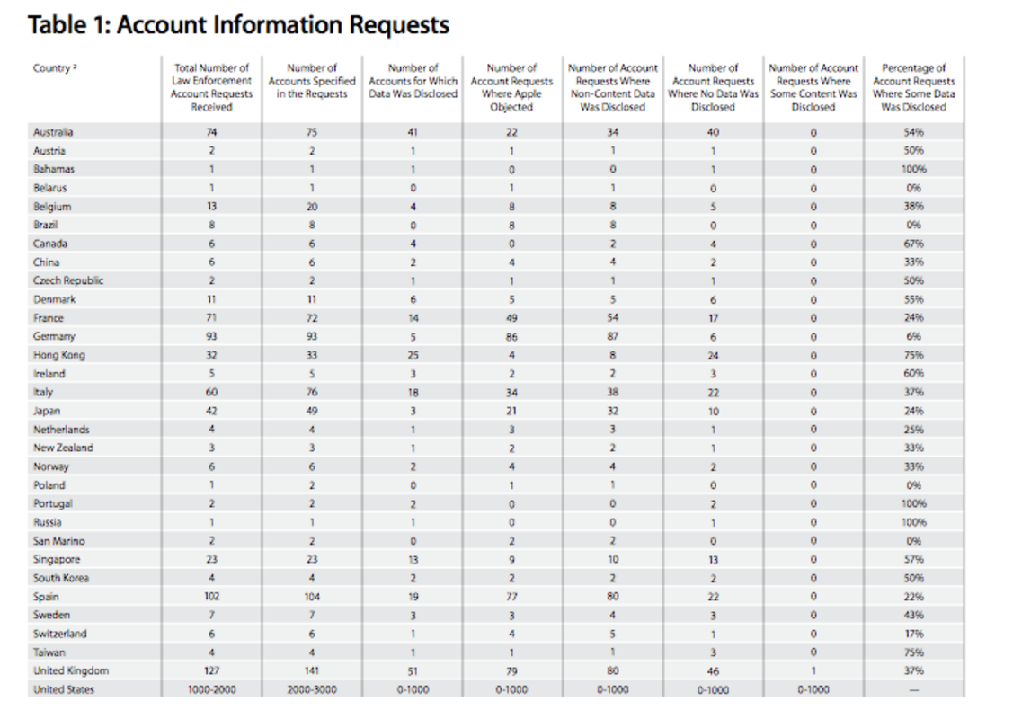 The report says that Apple received up to 5,542 requests for data from the US government, and responded to at least 3,110 requests with 鈥渟ome鈥 data. Apple clarified that requests could either be device requests, which asks for information on lost or stolen devices, or account requests, which ask for data on a specific iTunes, iCloud, e-mails, or other online accounts. Some 1,000 to 2,000 of these were account requests, though Apple says the majority of these requests asked for basic user info such as name and address, and rarely asked for photos or e-mail content.