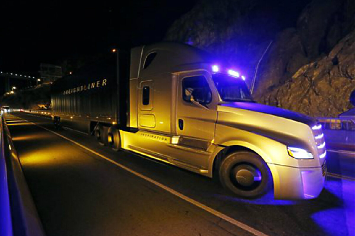 Daimler Trucks North America LLC debuted the self-driving big rig Tuesday night with a drive 鈥 and a driver steering 鈥 atop the Hoover Dam on the Nevada-Arizona border.