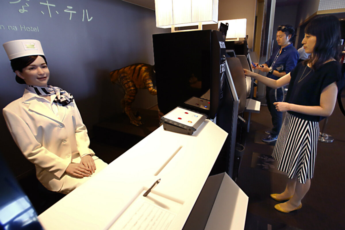 Hideo Sawada, who runs the hotel in southwest Japan as part of Huis Ten Bosch theme park, says the robots and other technology are not gimmicks but a serious effort at efficiency and technological progress.