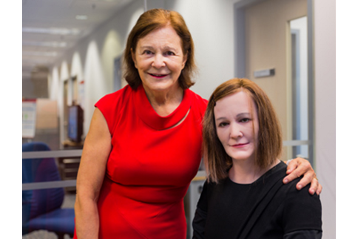is a made in the likeness of creator Professor Nadia Thalmann from Nanyang Technological University (NTU Singapore). Nadine is programmed with intelligent "assistant" software similar to Siri (the Apple computer program that works as an intelligent personal assistant) and Siri's Microsoft counterpart Cortana. Nadine, however, also expresses a version of moods and emotions with the ability to remember the people she has met before as well as conversations.