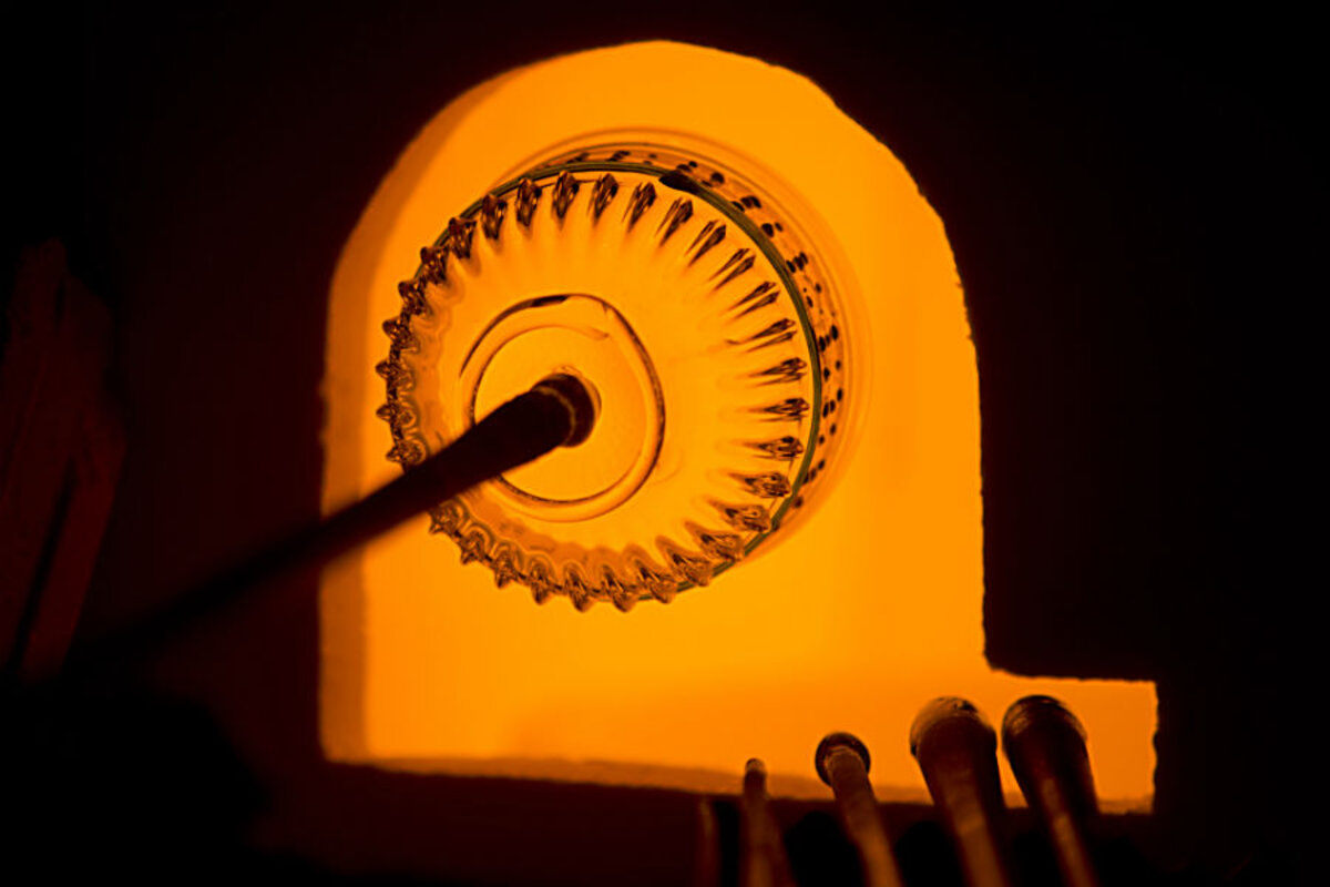 The gilding and enameling the Murano glassmakers added to their glass products had to be fired at higher temperatures than the glass itself to make the decorations permanent. The Venetians couldn't simply turn a nob to regulate the temperature of their furnaces, Gudenrath said, yet they mastered the tricky art of glass decoration by continuously reheating and shaping the vessel after the decorations had been added, a process he demonstrates in several videos.