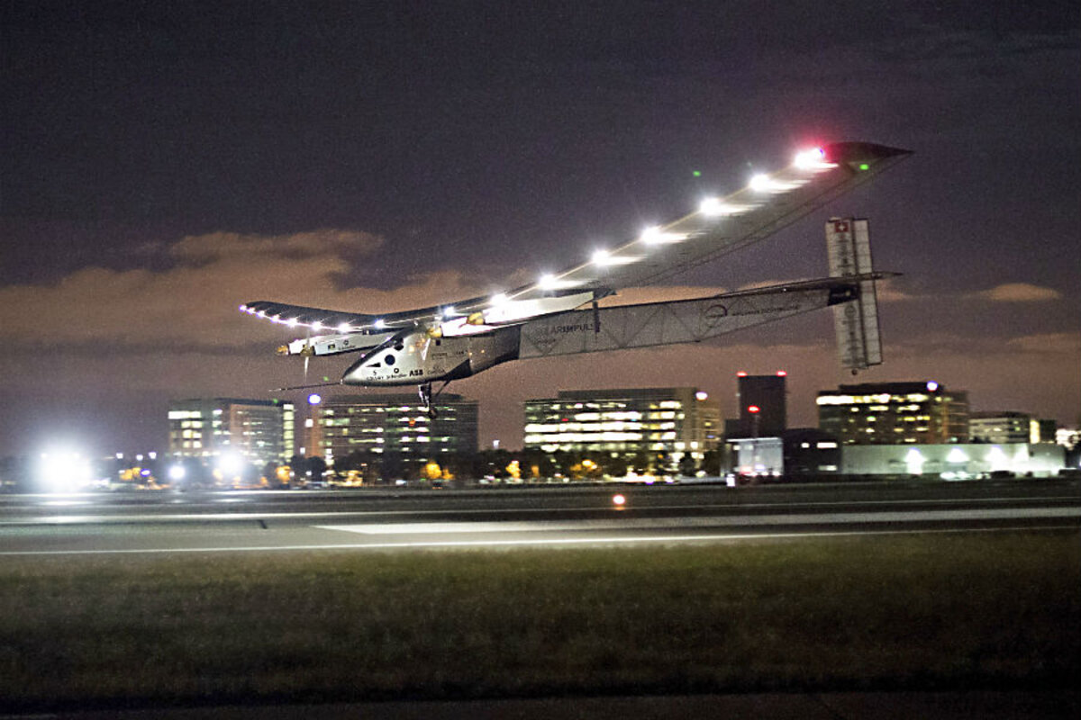 The Solar Impulse 2's wings, which stretch wider than those of a Boeing 747, are equipped with 17,000 solar cells that power propellers and charge batteries. The plane runs on stored energy at night.