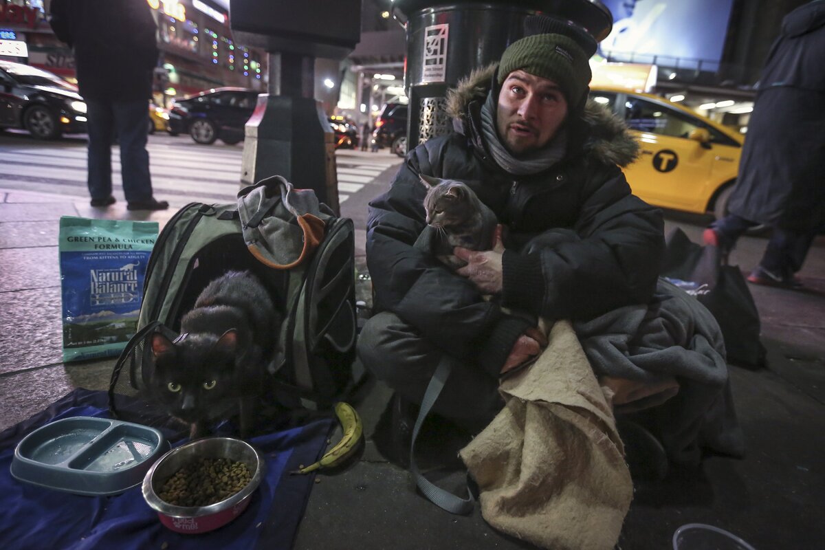 "I panhandle, and I'm looking for a job," he said. "But when you're dressed like this you can't go in for an interview."