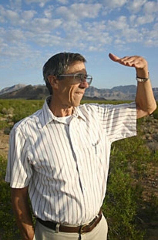 “If there were just one [proposed plant], we could deal with that. But we are looking at essentially every valley that is not protected as a national monument or park as being a potential site for solar,” says John Hiatt, a Las Vegas-based environmental activist. “It will be the industrialization of the Mojave Desert.”