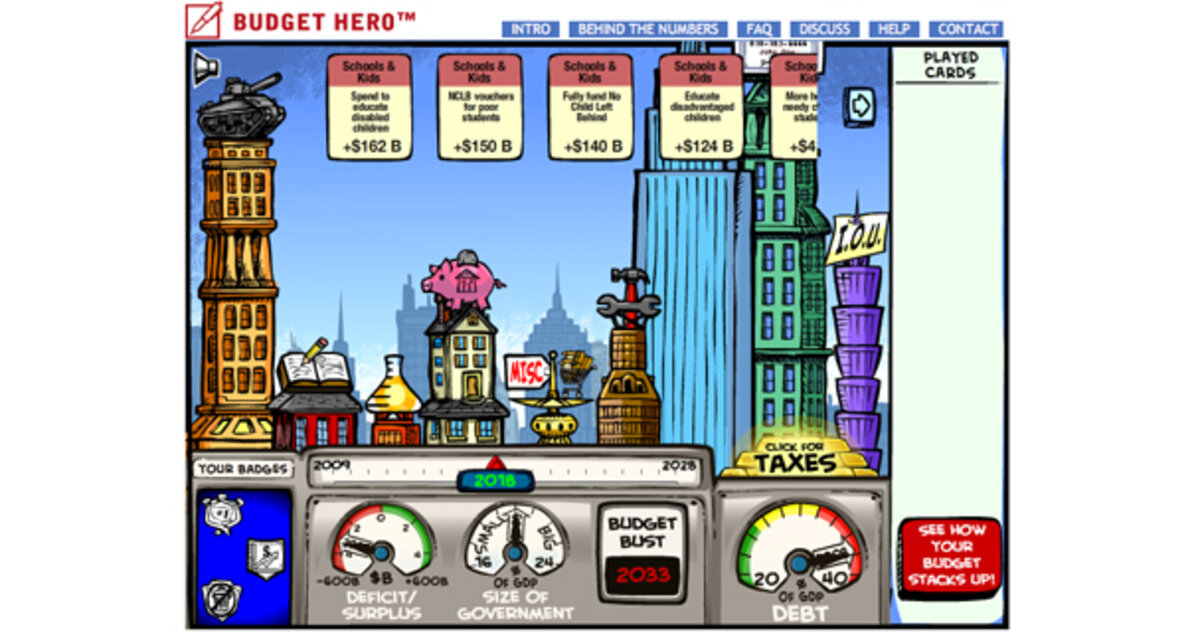 crafted a free online game that puts you in charge of the nation鈥檚 budget. lets you tweak taxes, strategize military spending, and brainstorm about education reform.