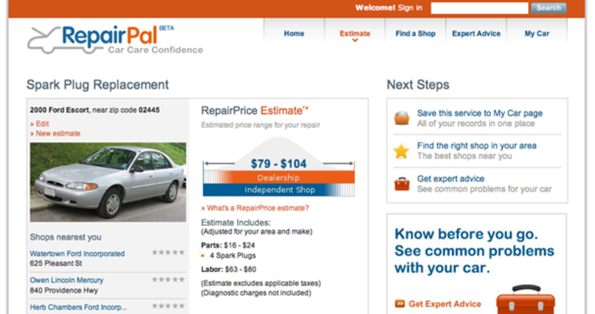 You can tell RepairPal what the auto shop says is wrong with your car, and it will give you a . If the numbers don’t match up, it may be time to find a new mechanic.
