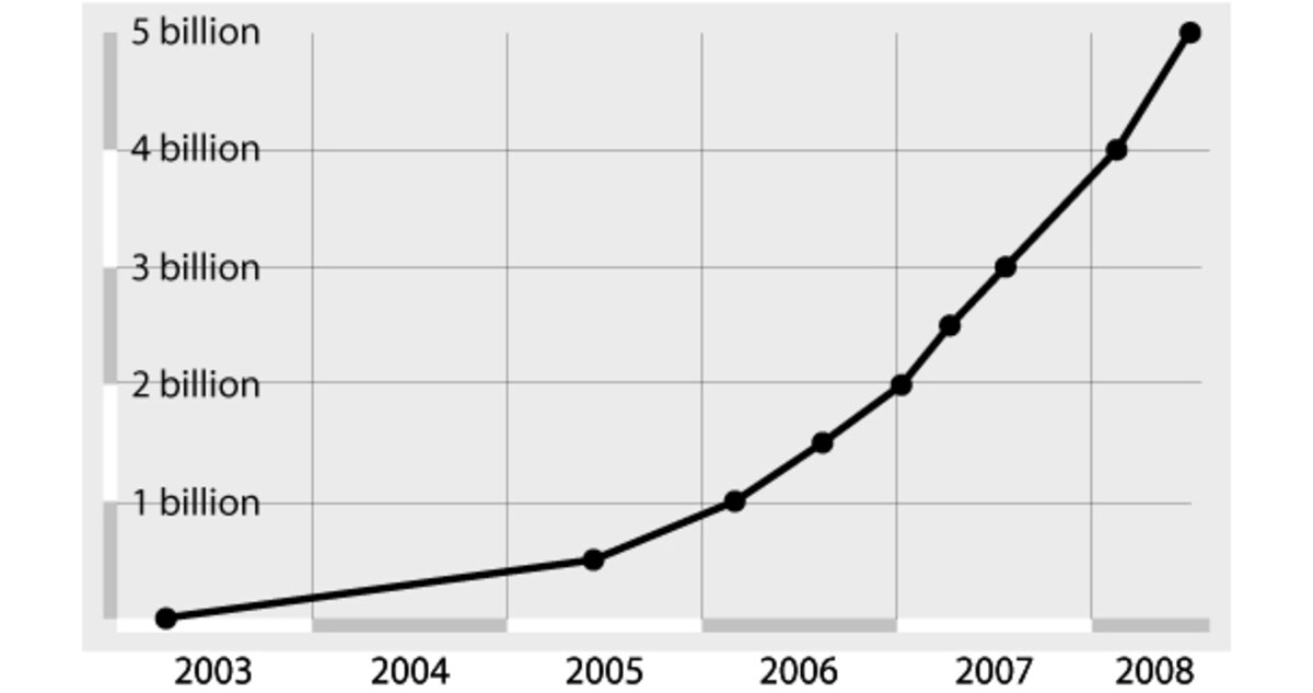 framed it well: 鈥淭his represents a significant acceleration in music sales. It took Apple (AAPL) nearly three years to sell its first billion songs (Feb 23, 2006), ten months to sell its second billion (Jan. 6, 2007), seven months to sell its third (July 31, 2007) and fourth billion (Feb. 27, 2008), and only three and a half months to sell its fifth (June 19, 2008).鈥