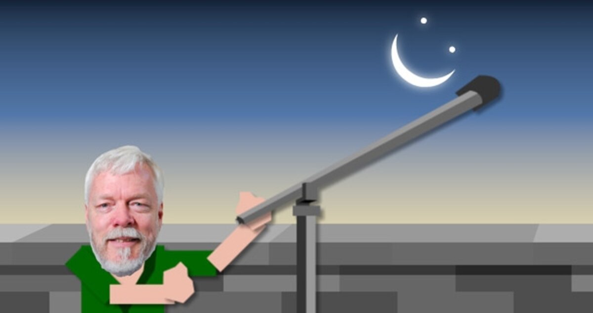 But its planetary companions aren't, until I raise a pair of binoculars to my eyes. In that circular field of view, Venus and Jupiter join the moon, although a bit bashfully at first. Still a bit too much daylight for their liking.