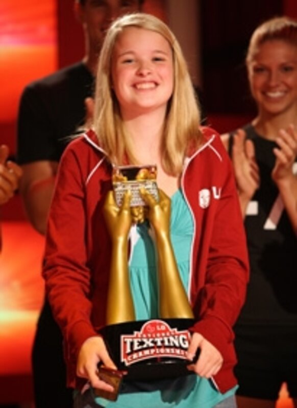 As for her advice to aspiring text champions and their parents, "Let your kid text during dinner! Let your kid text during school. It pays off," she told the .