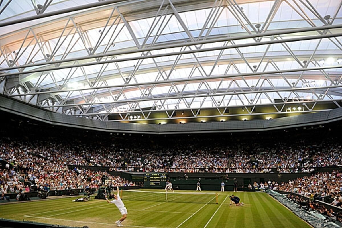 Most notably, of course, is the All-England Club's new Centre Court retractable roof. The $131 million, 182,986 sq. meter accordion-style roof allows for play to continue in even the hardest midsummer downpours. But even for that kind of cash, rain delays aren't a thing of the past. The takes 10 minutes to deploy, and a (one for the roof, one for the stands, and one to circulate air at court level) needs 20-30 minutes to get conditions inside just right for play.