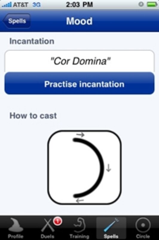 A free iPhone app called trains Hogwarts' newest students in the art of casting spells and prepares them for duels with other wizards. The game, launched three weeks ago by , preps players for wizard battles by having them practice motions with an iPhone while reciting an incantation.