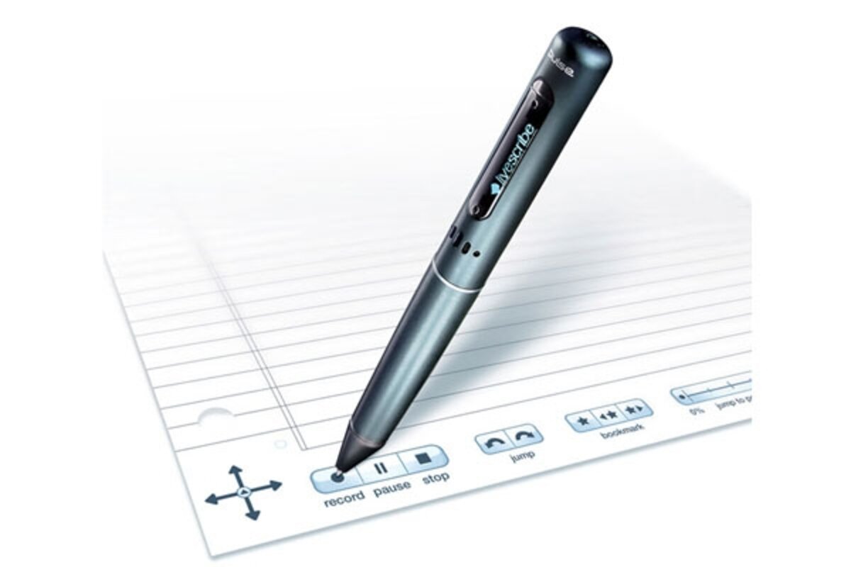鈥 The company's special, but unfortunately expensive, notepads feature a control strip at the bottom of each page. Click the 2-D buttons to record, stop, rewind, or bookmark key moments.