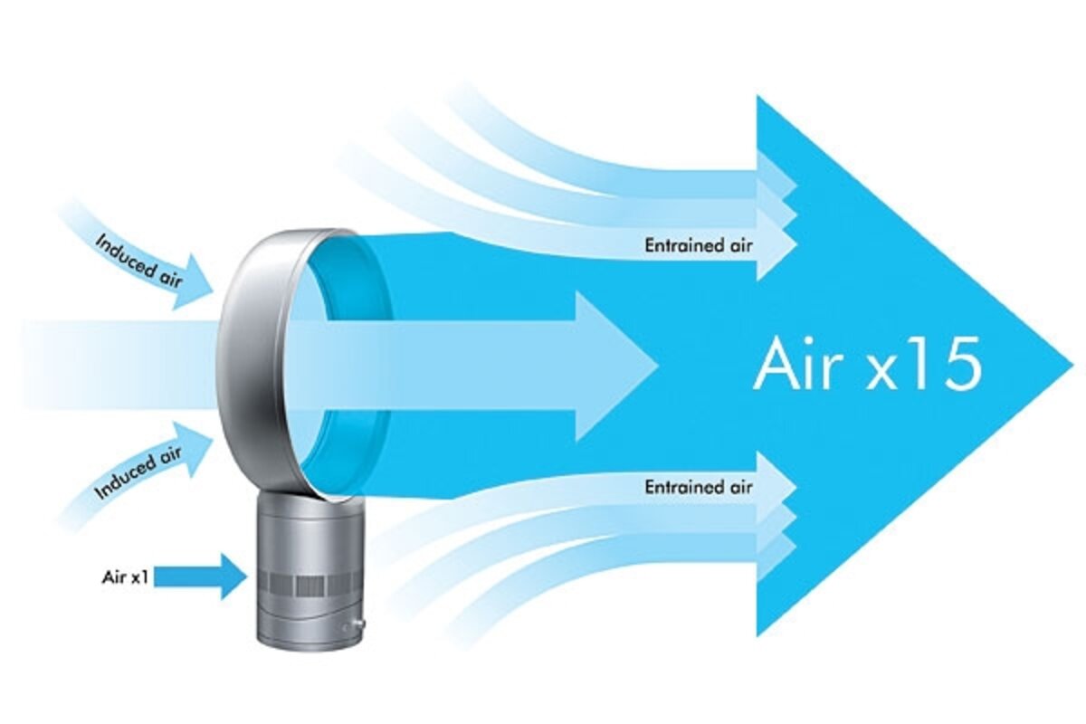 How's it work? While there aren't clever commercials out yet, our sources (read: ) tell us that a brushless motor draws air into the base where it's accelerated by supercharger-like technologies, then passed over a ring-shaped 16潞 airfoil-shaped ramp. Then, air behind the ring gets "induced" into the flow, and finally, air in front of the ring can't stand it anymore, joining the party through "entrainment."