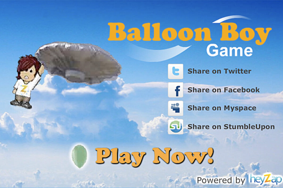 Over the past couple days, developers have rolled out two video games based on the Balloon Boy debacle. The first, and most popular, is called the , and it is distributed by the web start-up Heyzap. The second is , and it's hosted on Newgrounds.com.