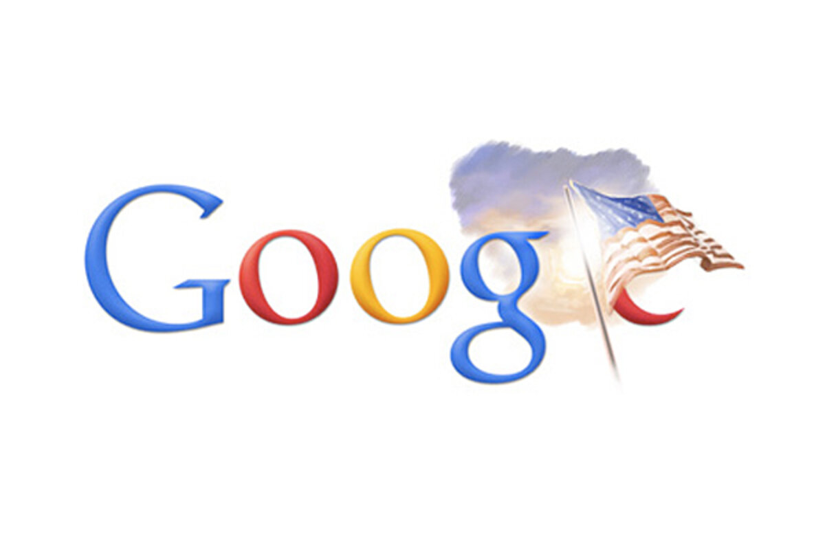 The super-search engine, Google, is honoring American military veterans on Veterans Day with an American flag partially covering its logo.