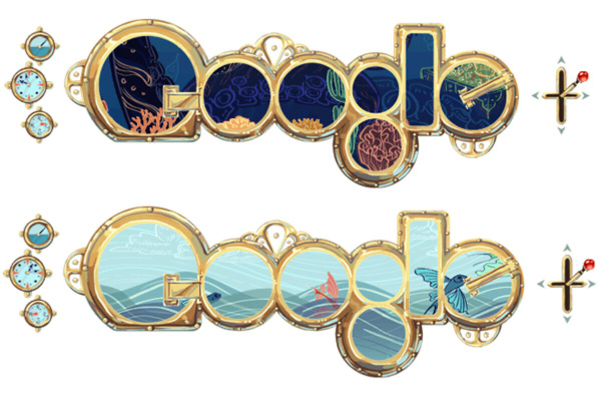 Google crafted a loving tribute to Jules Verne today with its interactive logo. The company replaced its homepage banner with portholes, providing a charming view of 20,000 leagues 鈥 or at least 1,000 pixels 鈥 under the sea.