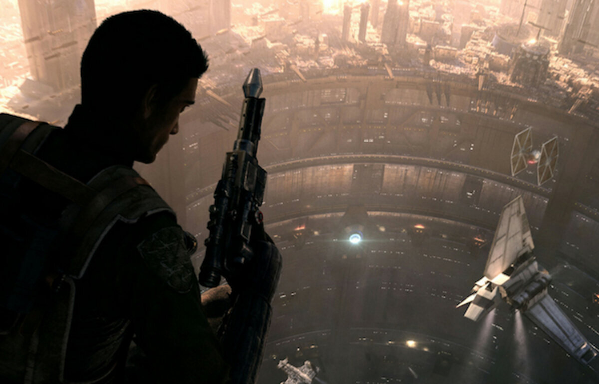 In the clip, which features a cut scene and a few seconds of gameplay from a PC version of Star Wars 1313, a nameless bounty hunter descends hundreds of levels below the surface of Coruscant, to an area called 1313. There, some sort of accident leaves his transport vessel in flames, and the bounty hunter is forced to leap and scramble from one fiery scrap of metal to another.听