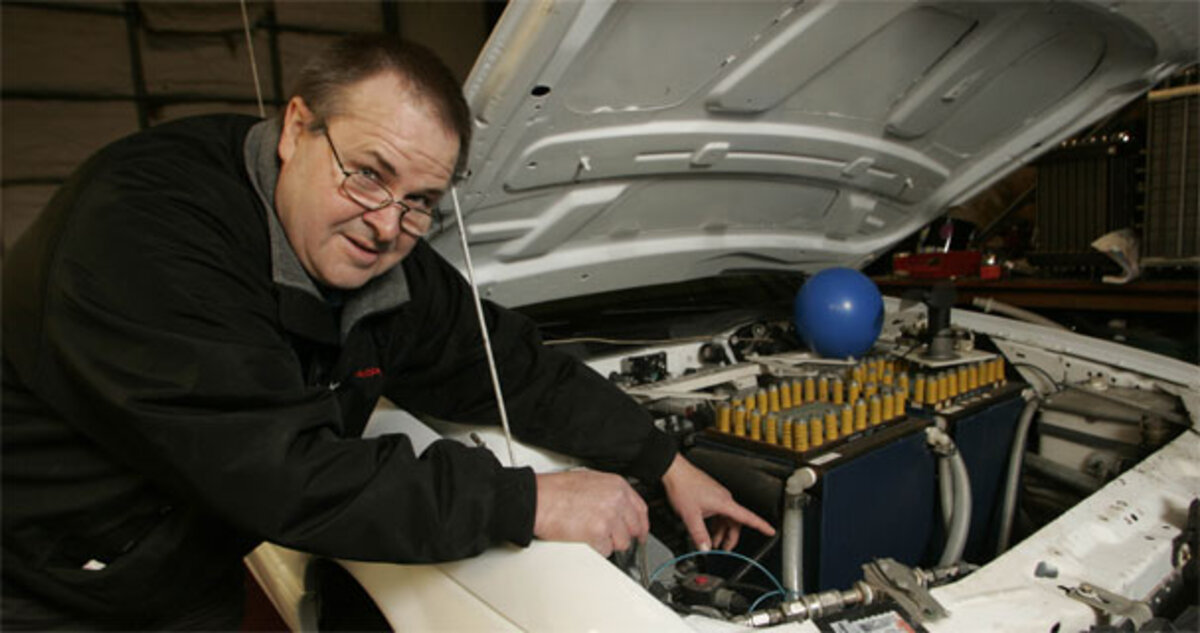 The final piece of the equation is "The New Jersey Genesis," a hydrogen fuel-cell car Strizki helped design and now maintains for the New Jersey Department of Transportation. He can fill up the Genesis with hydrogen from his electrolyzer and drive it pollution free.