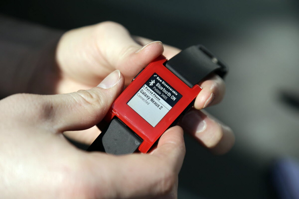 Most notable among current smart-watch models is the Pebble. This watch was first released in January, funded by a wildly successful Kickstarter campaign. The rectangular watch is controlled by buttons on the side of the watch face and uses Bluetooth to forward information 鈥撀爄ncluding app data 鈥 from users鈥 smart phones. The Pebble is compatible with both Apple and Android products and is water resistant up to 165 feet. 聽