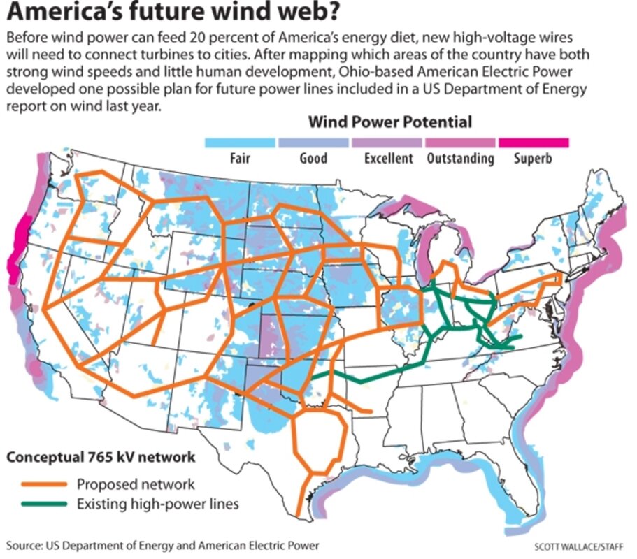 With political winds blowing toward renewable energy, power-line proposals are popping up to carry wind power around the country. President Obama has said he wants to see renewable wind from the plains help power cities like Chicago. The US Department of Energy last year reported that the nation could harvest 20 percent of its electricity from wind by 2020, much of it by tapping wind energy in places like South Dakota, which boasts the fourth best wind resource in the nation.