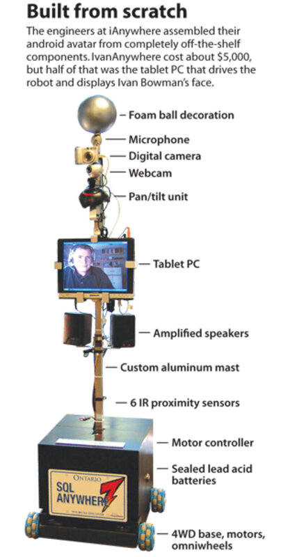 IvanAnywhere is still a prototype, says Paulley, and they have no intention of marketing the robot anytime soon 鈥 they鈥檙e busy enough with their current jobs. Several organizations are testing similar RC robots. They range from office bots, to NASA鈥檚 centaur-like 鈥Robonaut,鈥 and a hospital droid that lets soldiers in Iraq interact with their newborn children stateside. But the iAnywhere team believes they were the first to use a robot as the primary way that they interact with a co-worker.