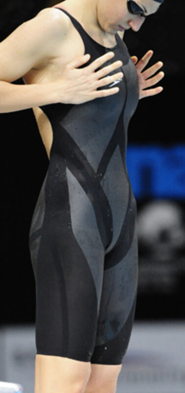 The suit, seen as a major technological leap, is said to reduce drag. It has no seams; the three parts of the full-body suit are glued, not sewn, together. It is also constructed to compress the swimmer鈥檚 core muscles, rather like a girdle, creating a more sleek object through the water.