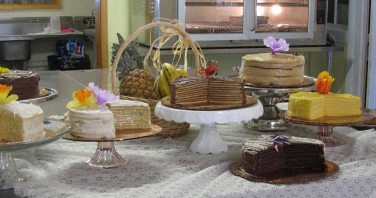Marshall sculpts her eight-layer cake in an assortment of flavors, depending on the season: the traditional (and still most popular) cooked chocolate frosting, along with banana, orange, coconut, pineapple, strawberry, peach, and island-grown fig and pomegranate. She bakes them quickly 鈥 in just 25 minutes 鈥 and in quantity. 鈥淚n a good week, I鈥檒l make 25 cakes,鈥 she says as she flips a hot cake disk out of a pan and places it atop a swirled cushion of frosting. 鈥淚 bake them as people order them. They call. I don鈥檛 do computer.鈥