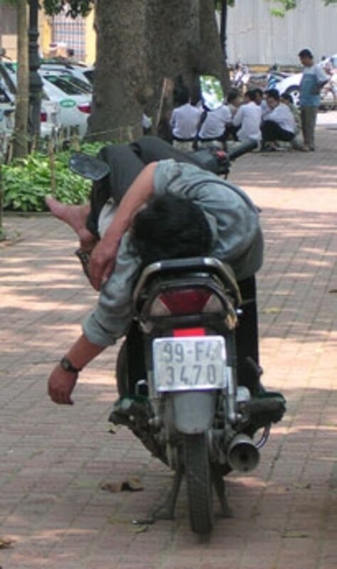 I watched as several motorbikes bumped up onto the sidewalk, nimbly dodging the droves of pedestrians and turning this city sidewalk into a traffic feeder lane. Out of the stream emerged a 鈥渕oto鈥 driver laden with boxes of computer equipment, who wove his way around the napper and the other sidewalk sideshows. He appeared to be driving toward the doorway I was standing in. I was curious, wondering when this driver would stop, or if he would stop. I quickly sidestepped to make room for him as he eased the bike over the threshold, only arriving at a full stop once inside the store. For a foreigner, this was breathtaking. For the Vietnamese, it was a plain-vanilla-ordinary thing to do.