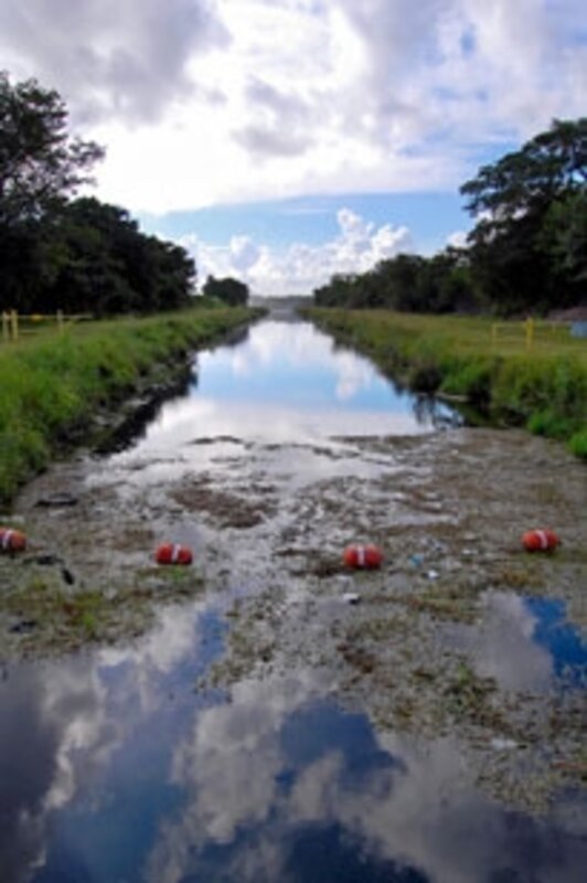Mary Barley pauses and points into the brush. There, perched near the water, is a green heron. She reaches for her camera. On the boardwalk nearby, tourists swat mosquitoes. A small alligator floats in the distance. Somewhere pumps deliver the water that makes this entire scene possible.