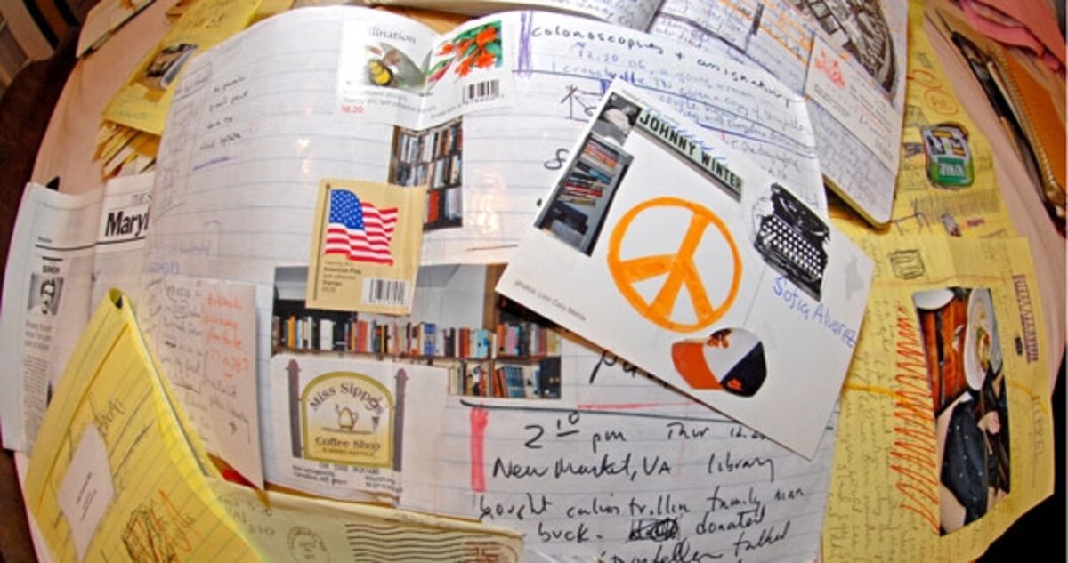The evidence lies stacked in milk crates: marble composition books fattened not with old photographs but photographs of things that are old: televisions when they were pieces of furniture (often cut from news stories about octogenarians enduring without health insurance); postage both new 鈥 love the 鈥50鈥檚 Fins & Chrome鈥 series - and cancelled; and obits of long-ago baseball players.