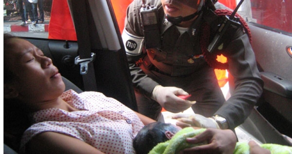 When Ms. Autchara鈥檚 water broke on the expressway, her fianc茅, Kriengsak Pansuwan, panicked. 鈥淚 had no idea what to do,鈥 he says. As Autchara was going into labor on the clogged tollway, Mr. Kriengsak frantically dialed the Royal Thai Traffic Police hot line and asked for their mobile first-aid unit.