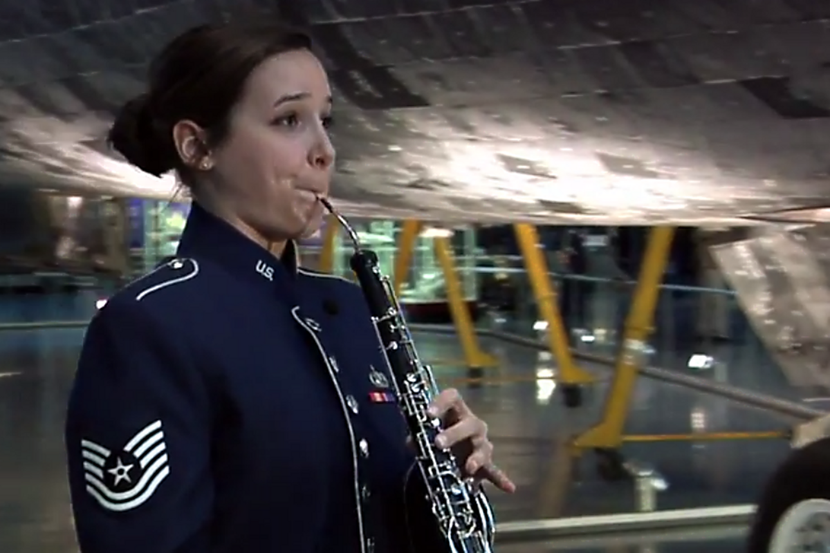 For starters, prepare to get misty over the聽US Air Force Band鈥檚聽rendition of 鈥淲hat Child is This鈥 as the camera shows the glowing faces of mesmerized children listening to the Christmas classic performed with choir as part of a聽聽at the Smithsonian's National Air and Space Museum, Steven F. Udvar-Hazy Center.