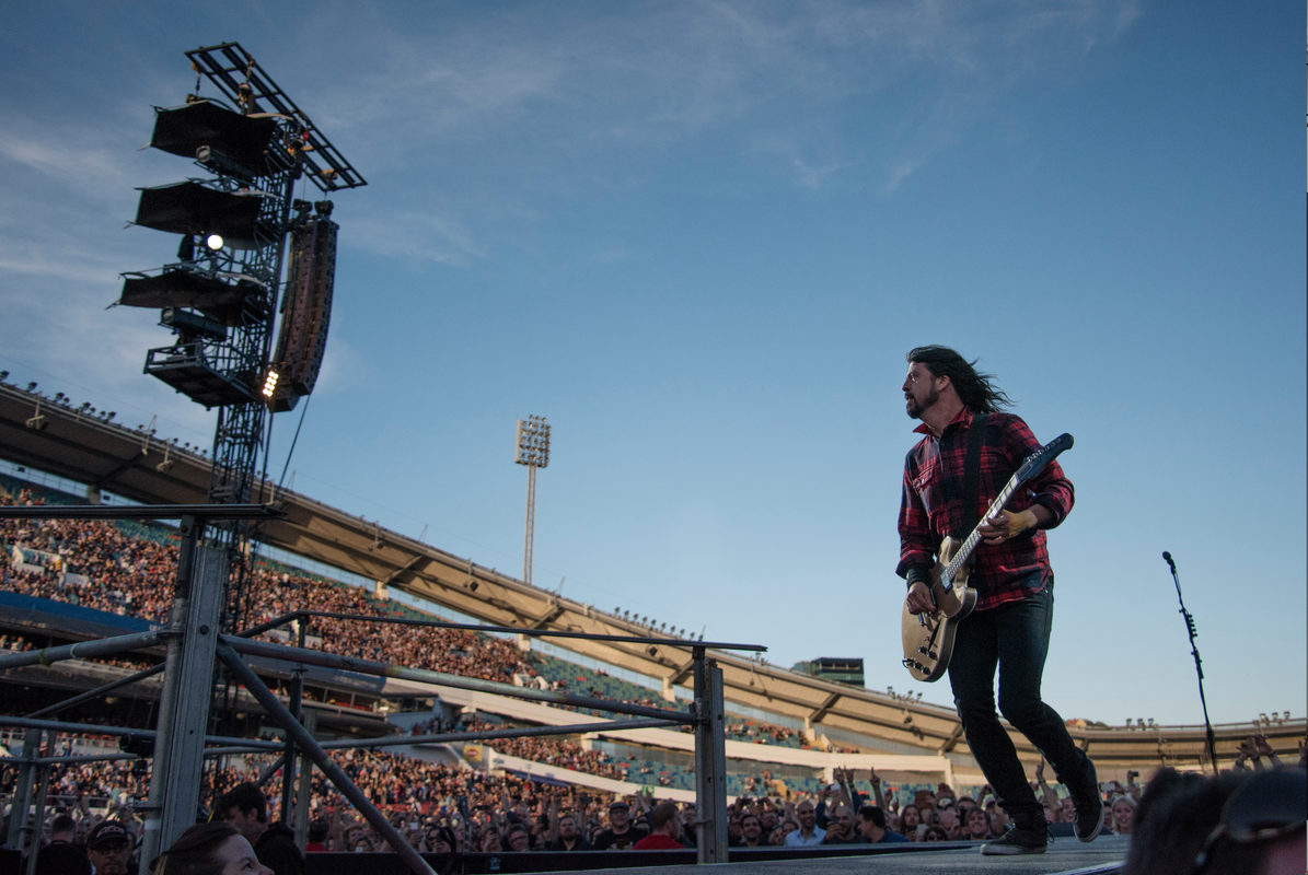 The rest of the band resumed playing as Grohl was taken away for medical attention. But he was later carried back on stage on a stretcher with his right foot bandaged and continued the concert sitting down or supporting himself on crutches.