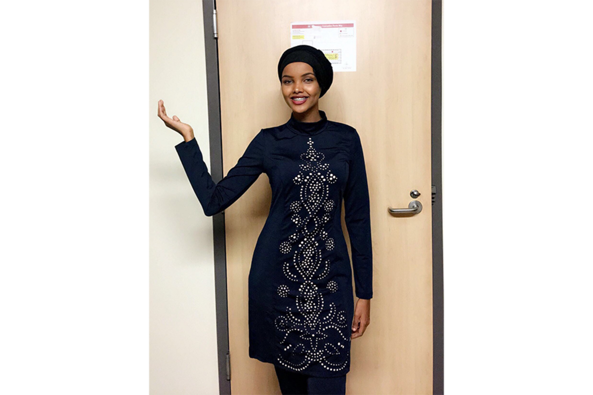 Halima Aden, a Somali-American who is a freshman at St. Cloud State University, became the first Muslim woman to compete in the Miss Minnesota USA pageant while wearing a hijab and other modest clothing that kept her fully covered. While most of her fellow contestants strutted their stuff in bikinis during the swimsuit portion, Ms. Aden donned a "burkini," a type of full-body swimming outfit.