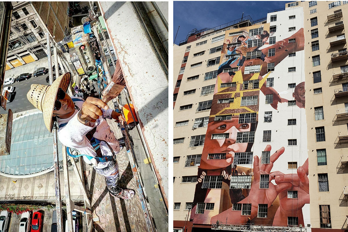 For much of the coronavirus shutdown, Robert Vargas has been working on one of the world鈥檚 most ambitious 鈥 and dangerous 鈥 pieces of art. He鈥檚 been painting 鈥淎ngelus,鈥 one of the world鈥檚 largest murals, entirely freehand on the side of a 14-story Los Angeles building. Ascending two stories on the swaying scaffolding can feel like an additional 1,000 feet, says Mr. Vargas, who explains that 鈥淎ngelus鈥 celebrates ethnic diversity in an inclusive city. But when the Black Lives Matter protests came through his downtown neighborhood, the internationally known fine artist came back down to earth. He watched rioting and looting break out while standing in front of another of his murals, 鈥淥ur Lady of DTLA.鈥澨