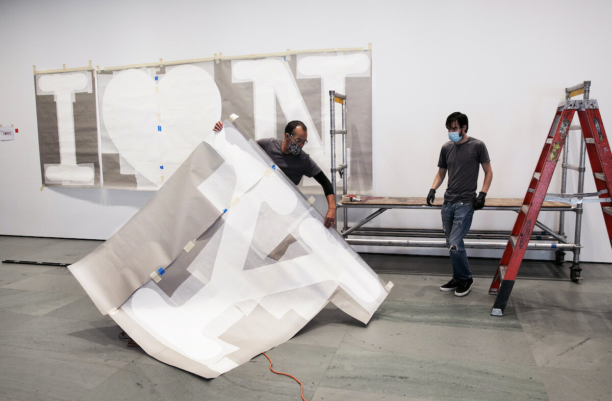 The pandemic hit only a few months after MoMA reopened in October following a $450 million expansion. Back then, visitors were greeted in the lobby with an enormous Haim Steinbach banner that read: "Hello. Again." It's been replaced: Now they'll see a Milton Glaser piece that reads "I [HEART] NY."