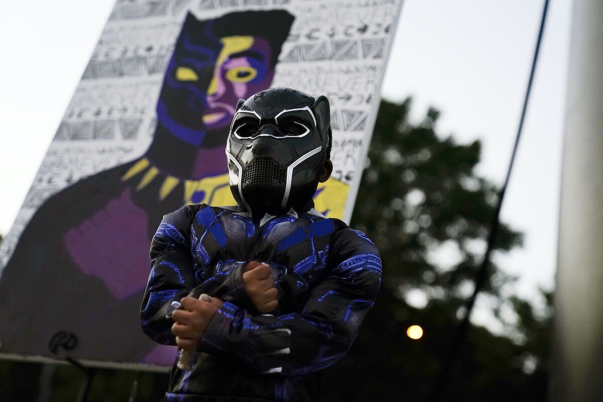 A viewing of 鈥淏lack Panther鈥 was held at an outdoor amphitheater where people practiced social distancing. Most attendees wore masks, while others 鈥 mostly kids 鈥 dressed up in Black Panther costumes.