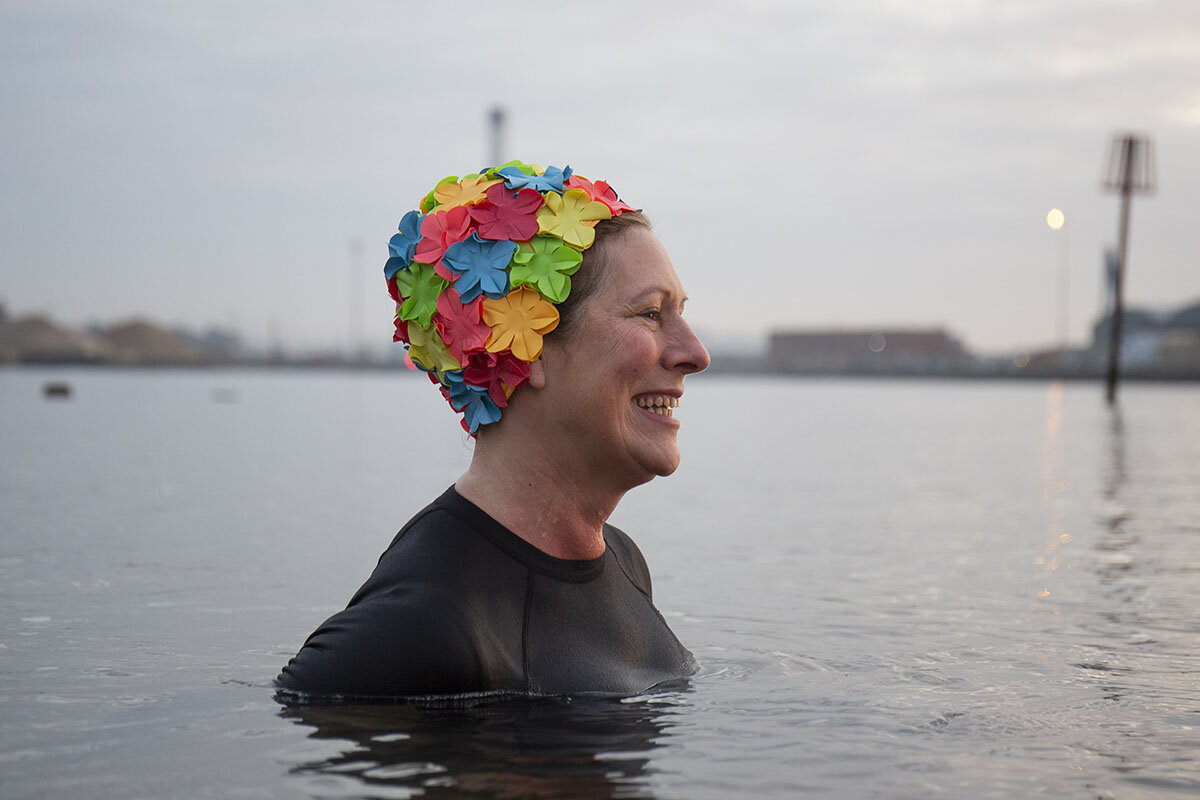 Emma Marchant, a veteran sea swimmer of 10 winters, says that it鈥檚 important to limit the time spent in the cold ocean. 鈥淎fter a while, the body begins to feel comfortable in the water and it can be tempting to prolong your exit,鈥 she explains. 鈥淭he real danger is the time between coming out of the water and getting dry.鈥