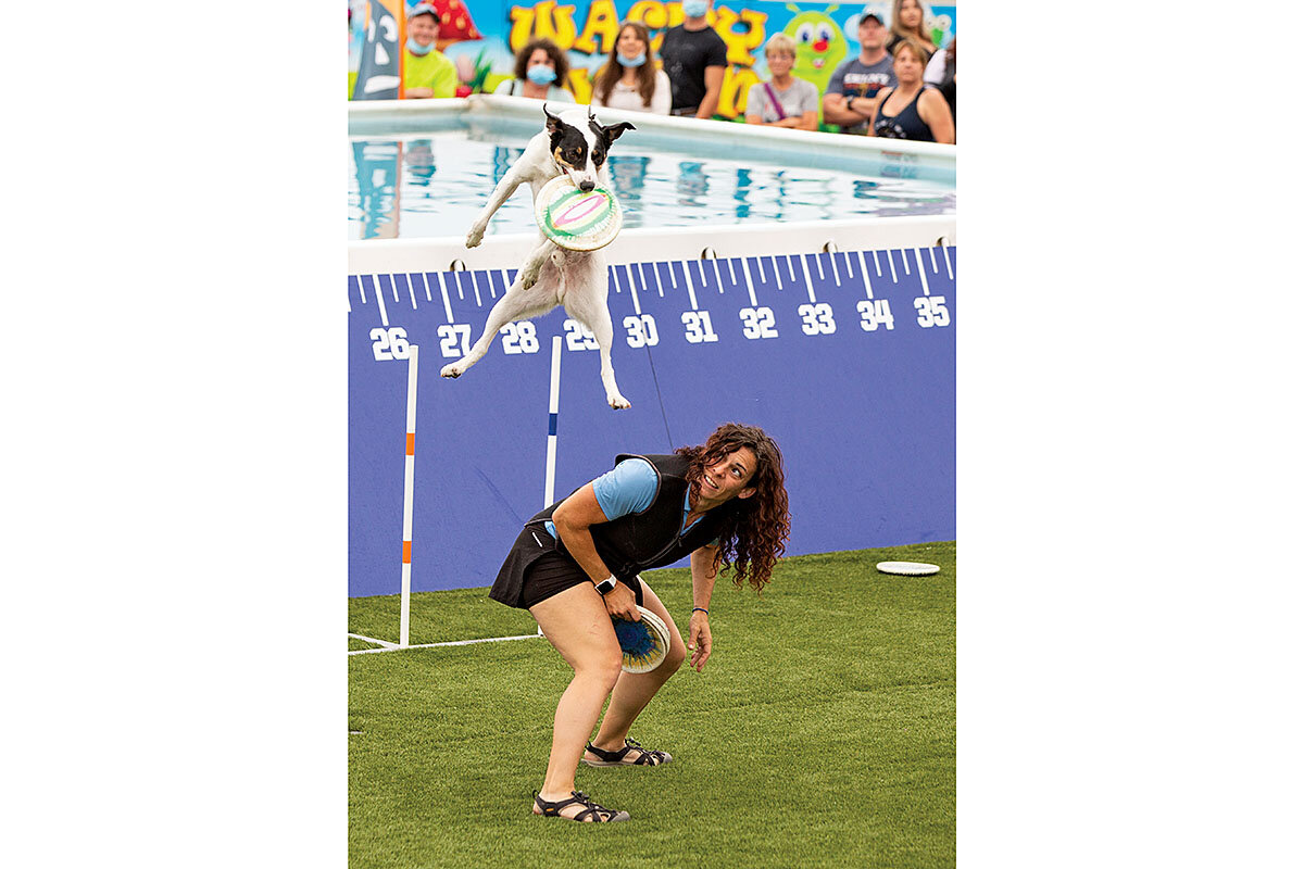 The dogs, when they perform, are crazy. They catch any flying disc launched, all while spinning, flipping, springing over their handlers, or jumping 30 feet into a pool. The crowd loves them. 鈥淎nd they love the crowd!鈥 handler Andrea Rigler says later. 鈥淭hey get hyped!鈥