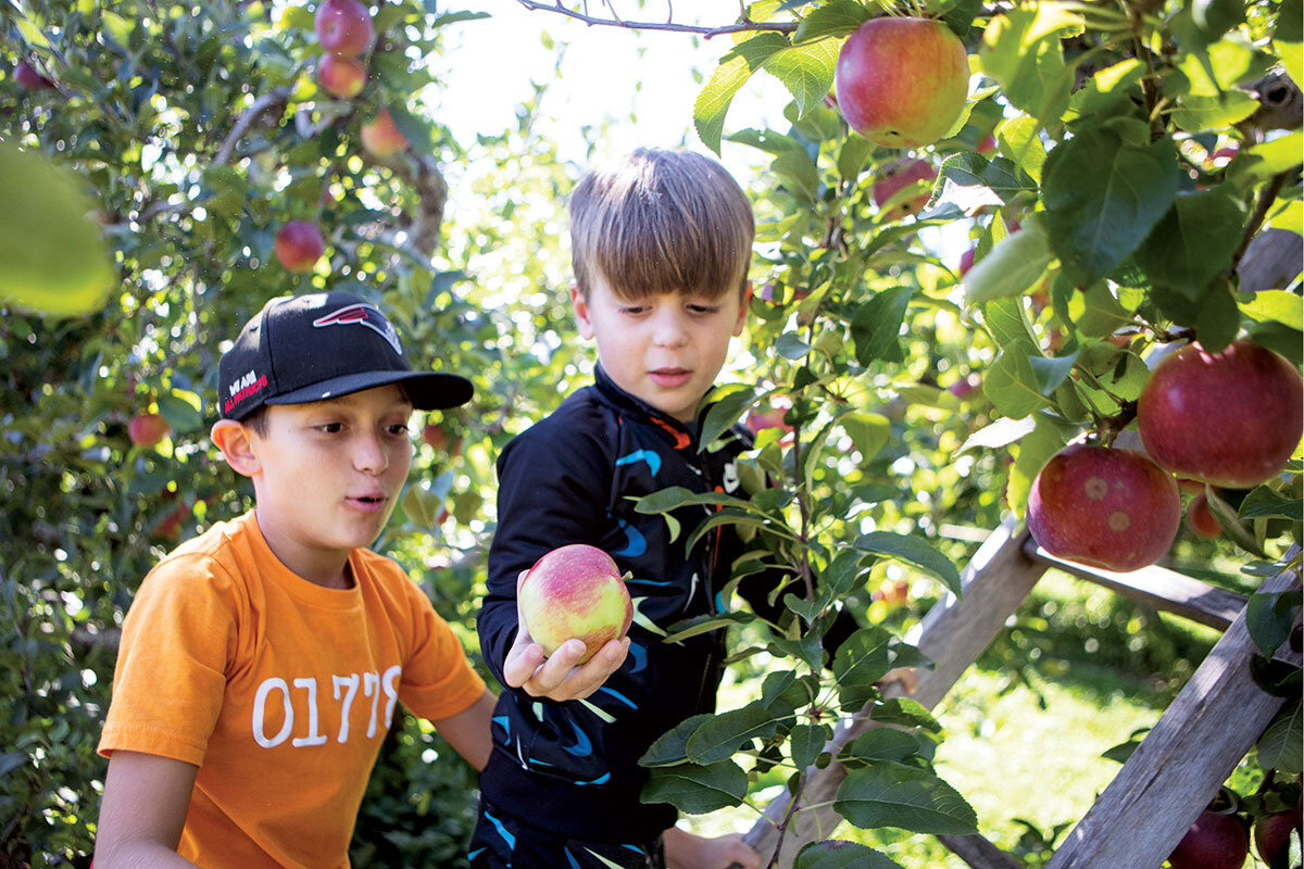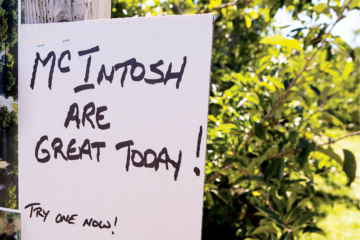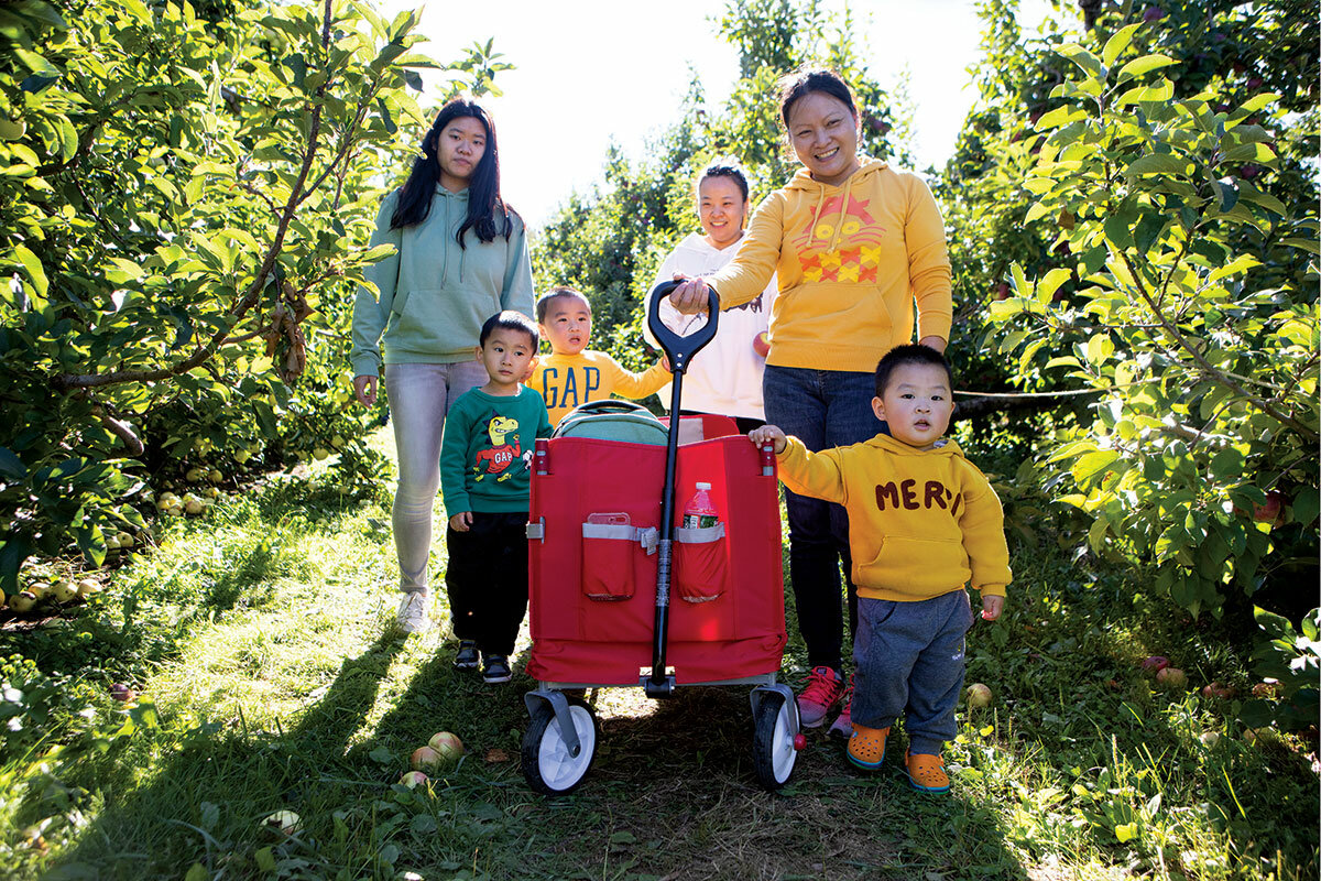 One sunny Saturday, a couple meander through orchard rows grasping opposite ends of a stick, two full harvest bags of apples slung between them. They pass other families, spaced along the length of the grassy path, cast in afternoon sunlight dappled by the squat trees. The pickers talk in hushed tones, searching for the right adjectives to describe the immense flavor of the half-eaten fruits in their hands. 聽