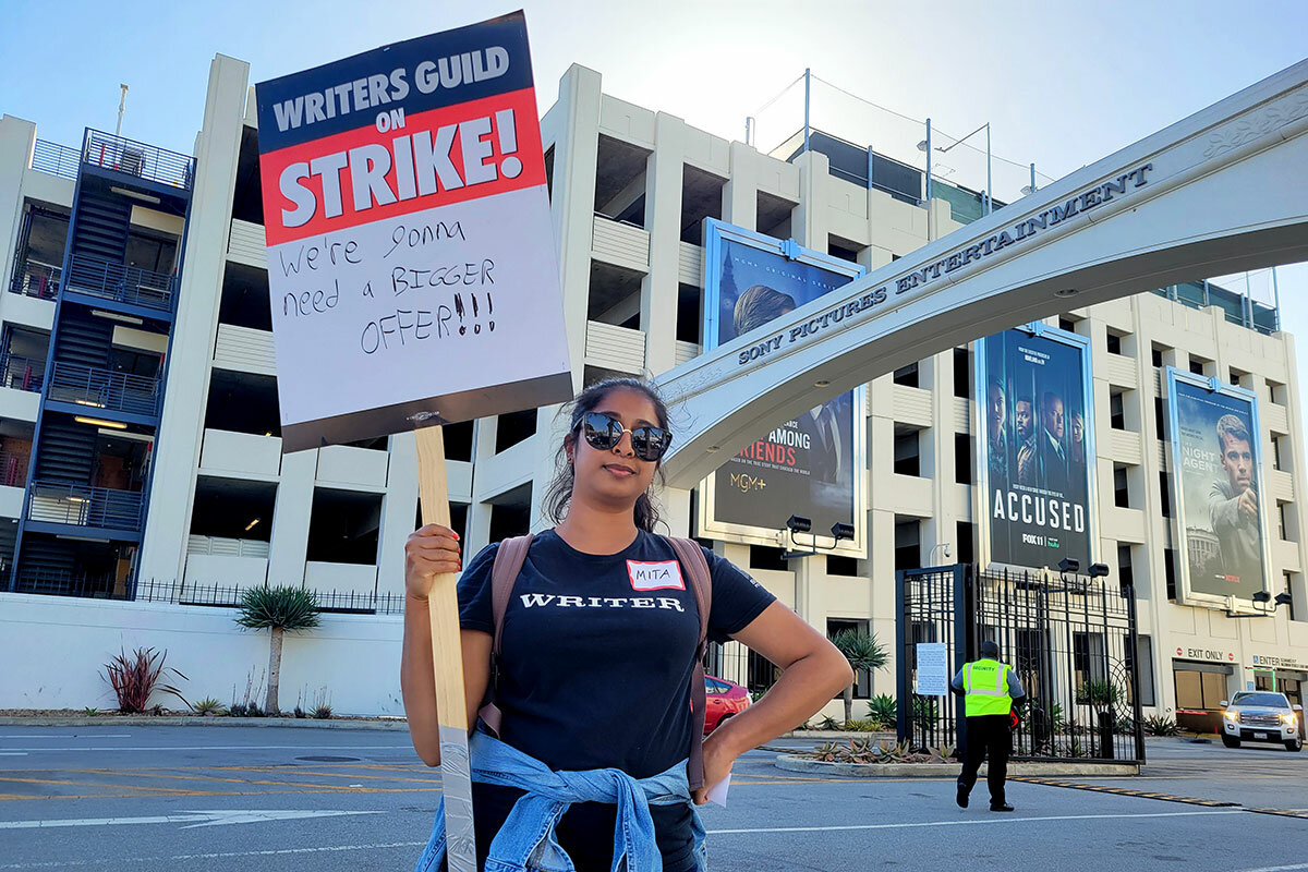 鈥淚t took me a while but, like, I knew that my heart was in Hollywood,鈥 says Ms. Jahagirdar, who is marching outside Sony Studios while carrying a sign that reads, 鈥淲e鈥檙e gonna need a bigger offer!鈥